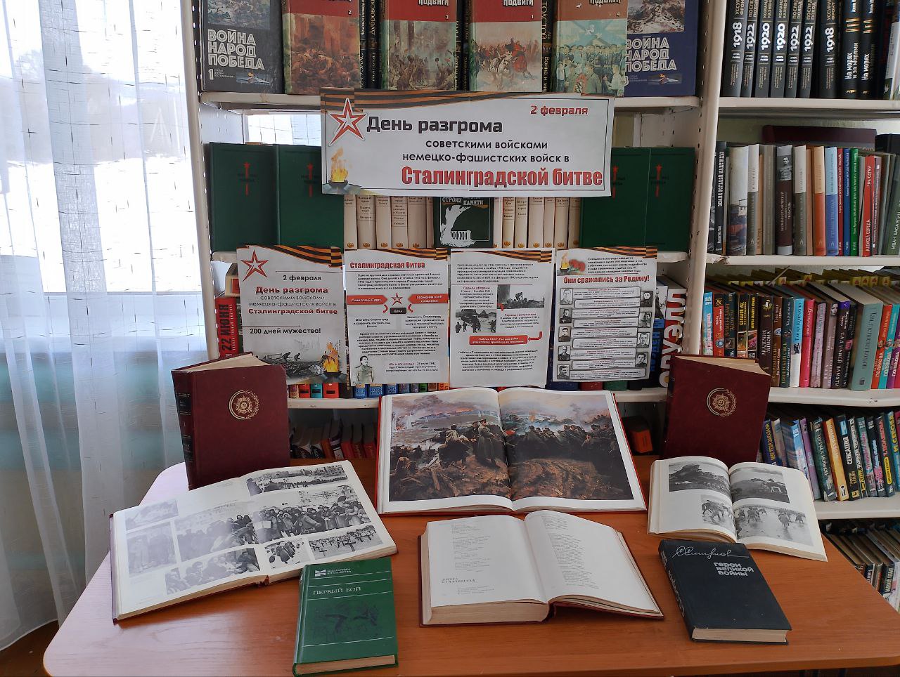 В читальном зале представлена выставка, посвященная одному из самых переломных моментов Великой Отечественной войны – Дню разгрома немецко-фашистских войск в Сталинградской битве (1943 год).